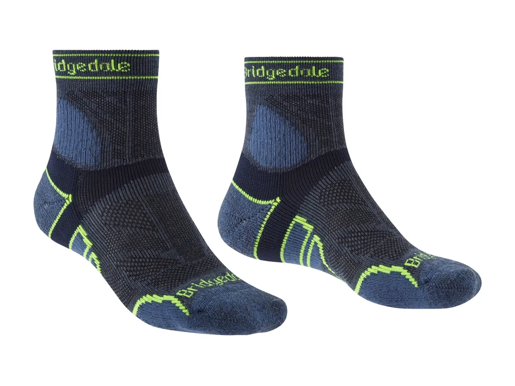 Bridgedale Trail Run LW T2 Merino Sport 3 Crew Socks dámske ľahké ponožky nad členok s maximálnou ventiláciou na intenzívne aktivity, ako beh v teréne alebo cyklistika. Kompresná konštrukcia až po prsty zvyšuje stabilitu. Vystuženie na špičke zamedzuje bolestivým nárazom. Široká konštrukcia špičky umožňuje voľný, prirodzený pohyb prstov v ponožke. Ich štíhlejšia konštrukcia je špecificky prispôsobená na dámsku nohu.